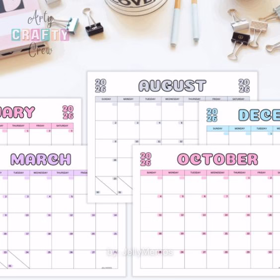 Plan your year with these pretty 2026 watercolor calendars! Each month has its own unique color design. They are easy to print for free, so you can add them to your planner or use them to help organize your school work and fun events. You will love how simple and colorful your year will look!