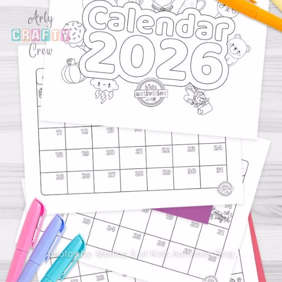 This free project gives you a calendar for 2026 that kids can color in every month. Each page has fun pictures, making it a great way to stay organized and creative all year. Kids can decorate it for their own rooms or give it as a thoughtful gift.
